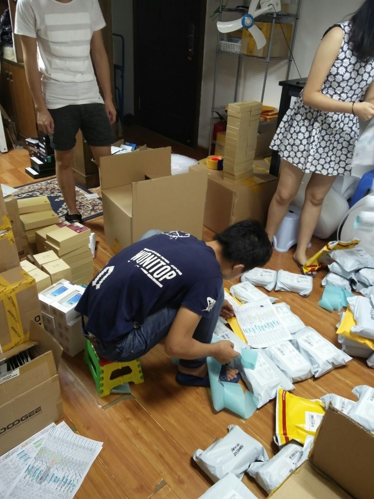 Cada semana recibimos envíos de nuestra oficina de Shenzhen con móviles y tablets y otros dispositivos electrónicos, que como podéis ver en las imágenes adjuntas trabajan frenéticamente no sólo para realizar los envíos, sino también para revisarlos y realizar el correspondiente Control de Calidad y ajuste del lenguaje en español. De este modo, nos aseguramos que cualquier terminal que llega a nuestra oficina y tienda central en Barcelona, tiene la calidad correcta y nos evitamos muchos quebraderos de cabeza.