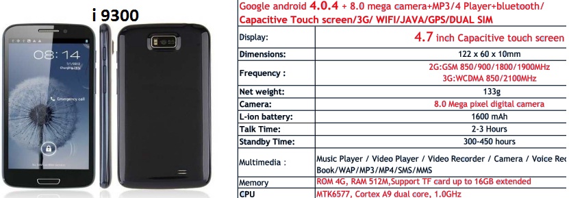 * Terminal libre i9300 pantalla 4,7″ procesador Cortex A9 Dual Core 2x1GHz muy parecido al nuevo 3º terminal de Samsung, por sólo 122€ según cantidades.